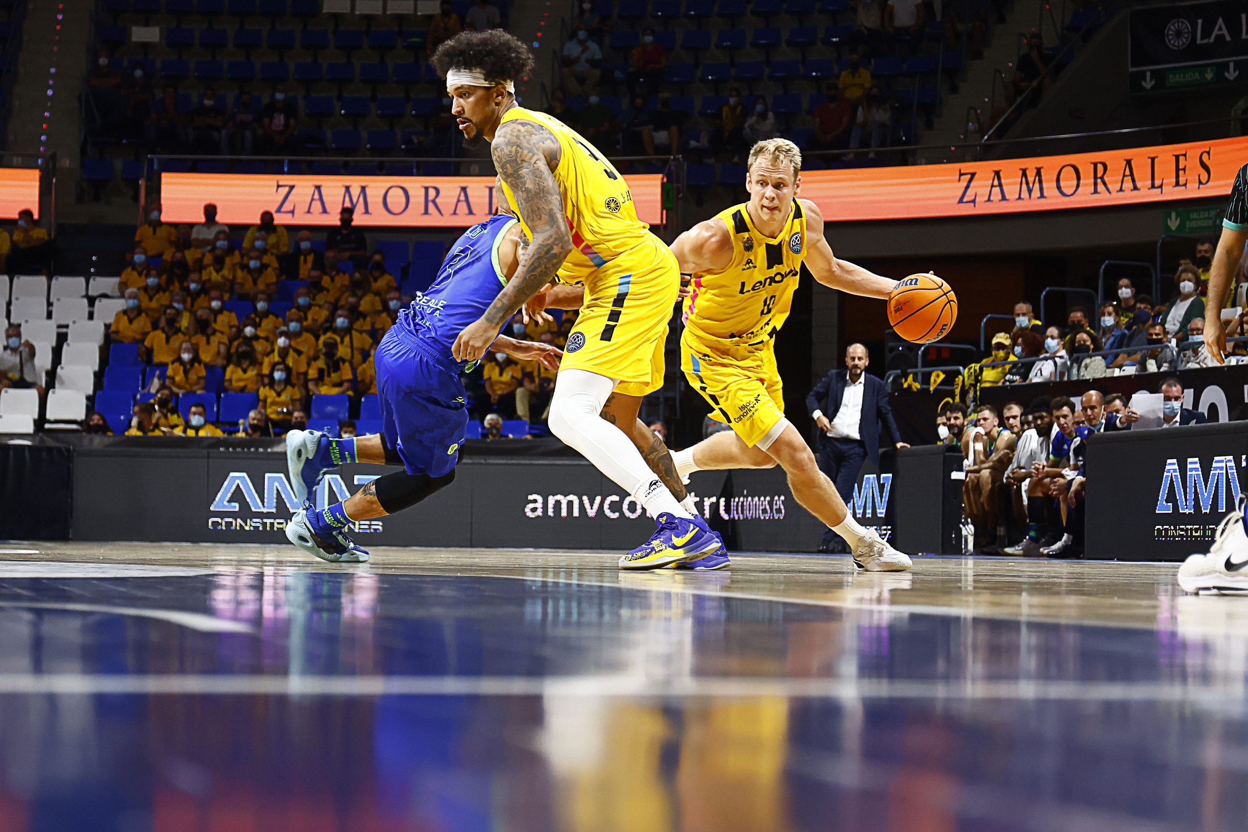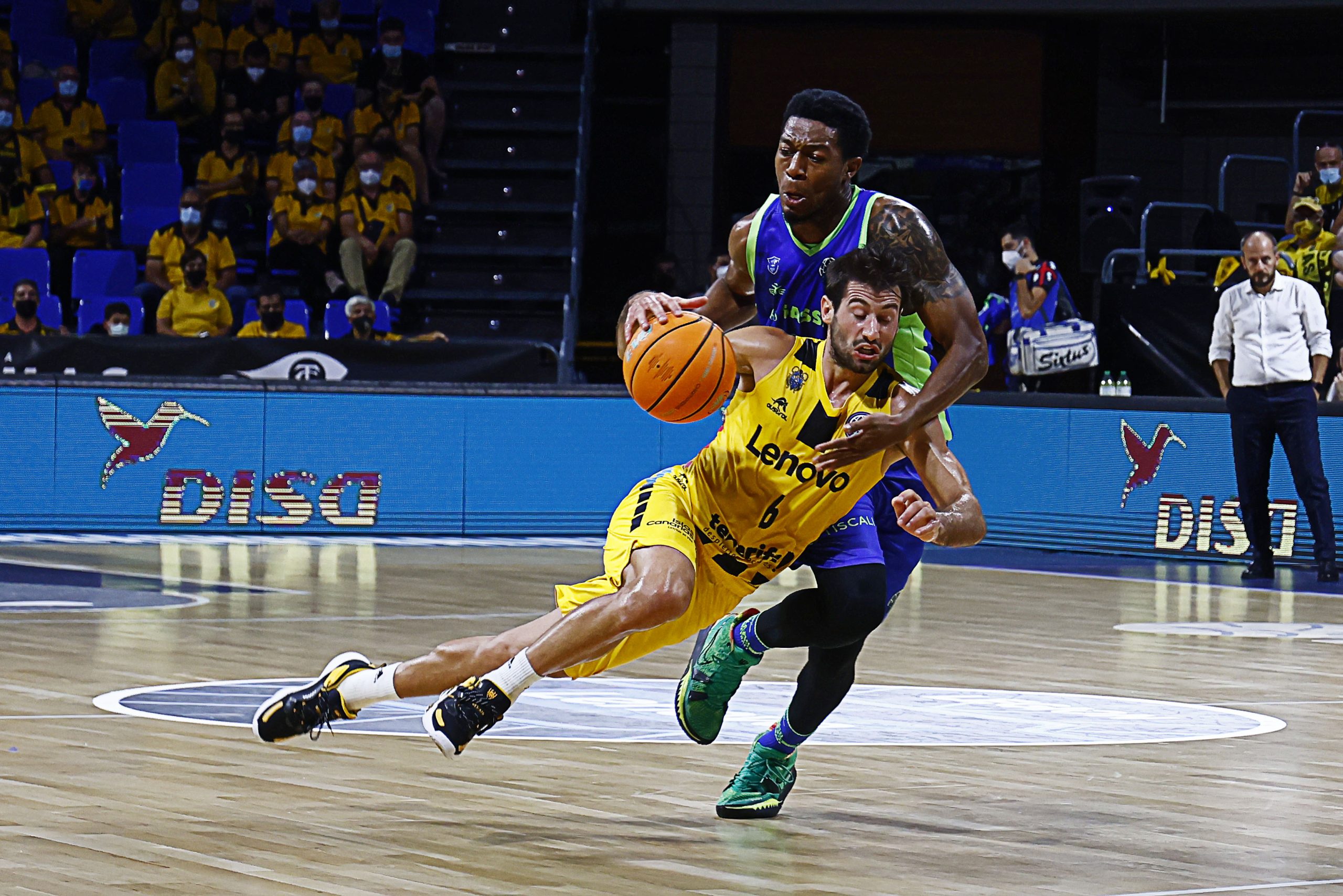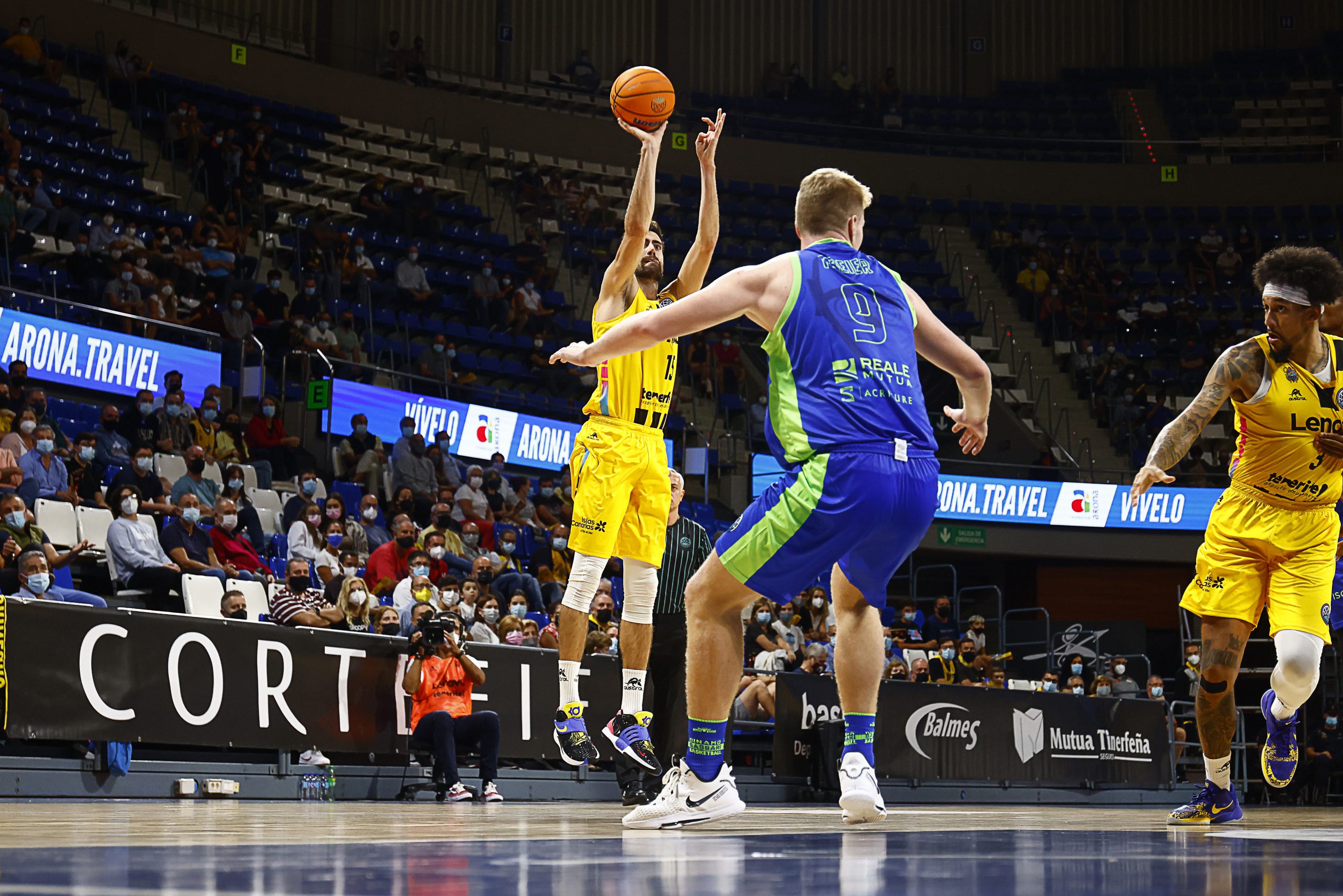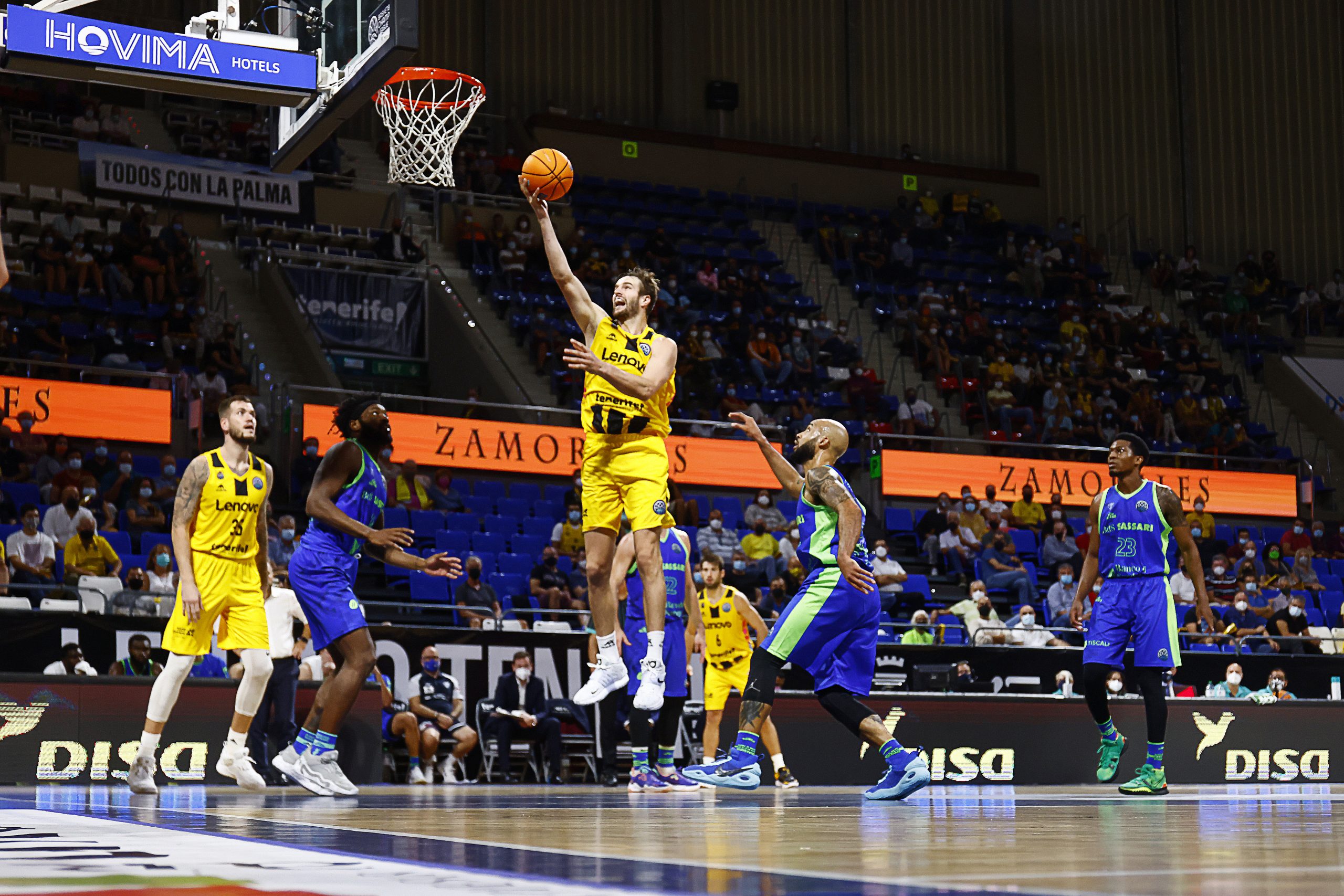 miércoles, 13 octubre, 2021 - 10:10Intensidad y oficio. El Lenovo Tenerife se impuso este miércoles noche al Dinamo Sassari (87-60) con un excelente ejercicio defensivo. El grupo de Txus Vidorreta fue de menos a más para encarrilar el partido con un segundo cuarto sublime (23-6) y firmar luego un sobresaliente acto de solvencia. Los tinerfeños enhebran así su segundo triunfo en la #BasketballCL en otros tantos partidos.