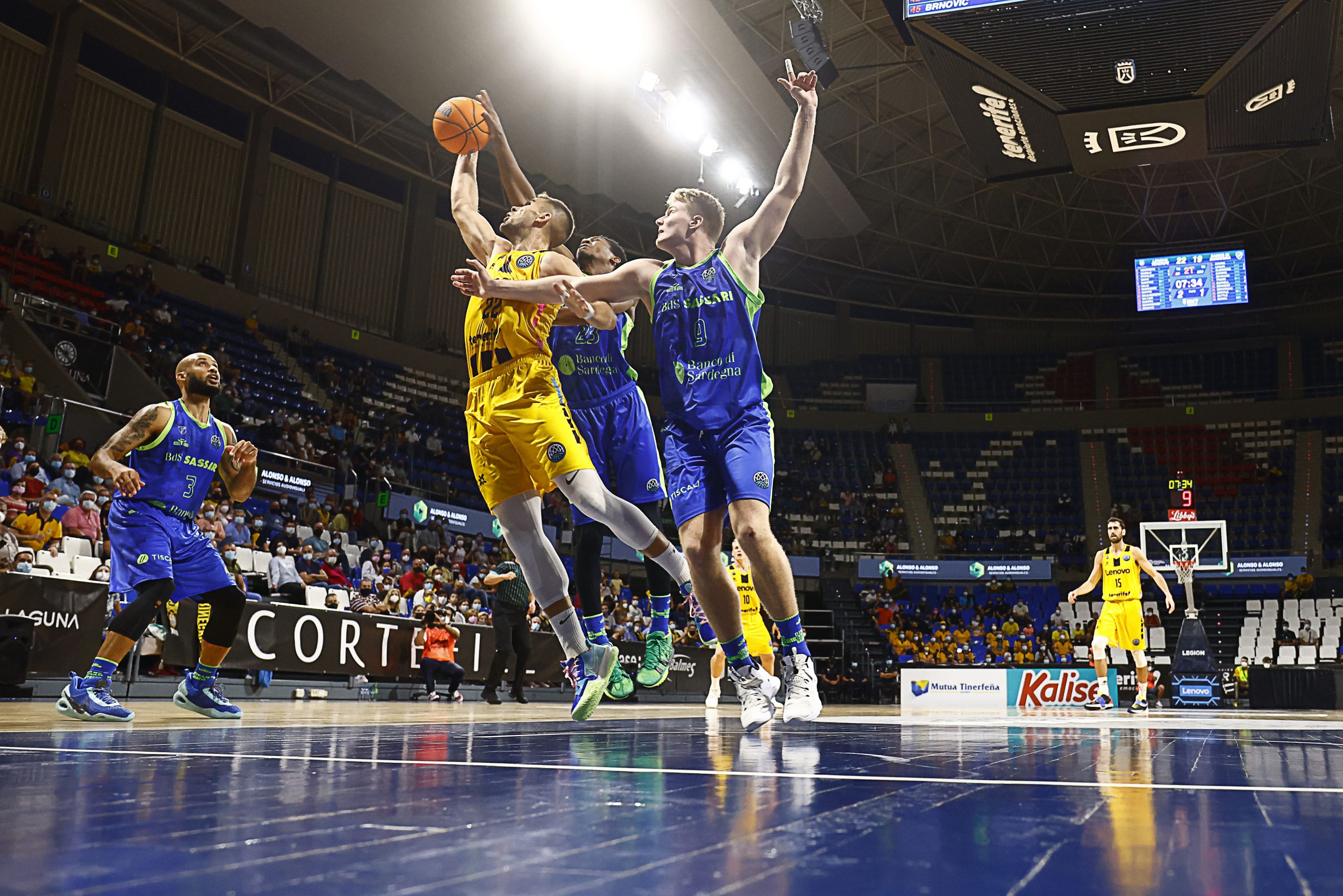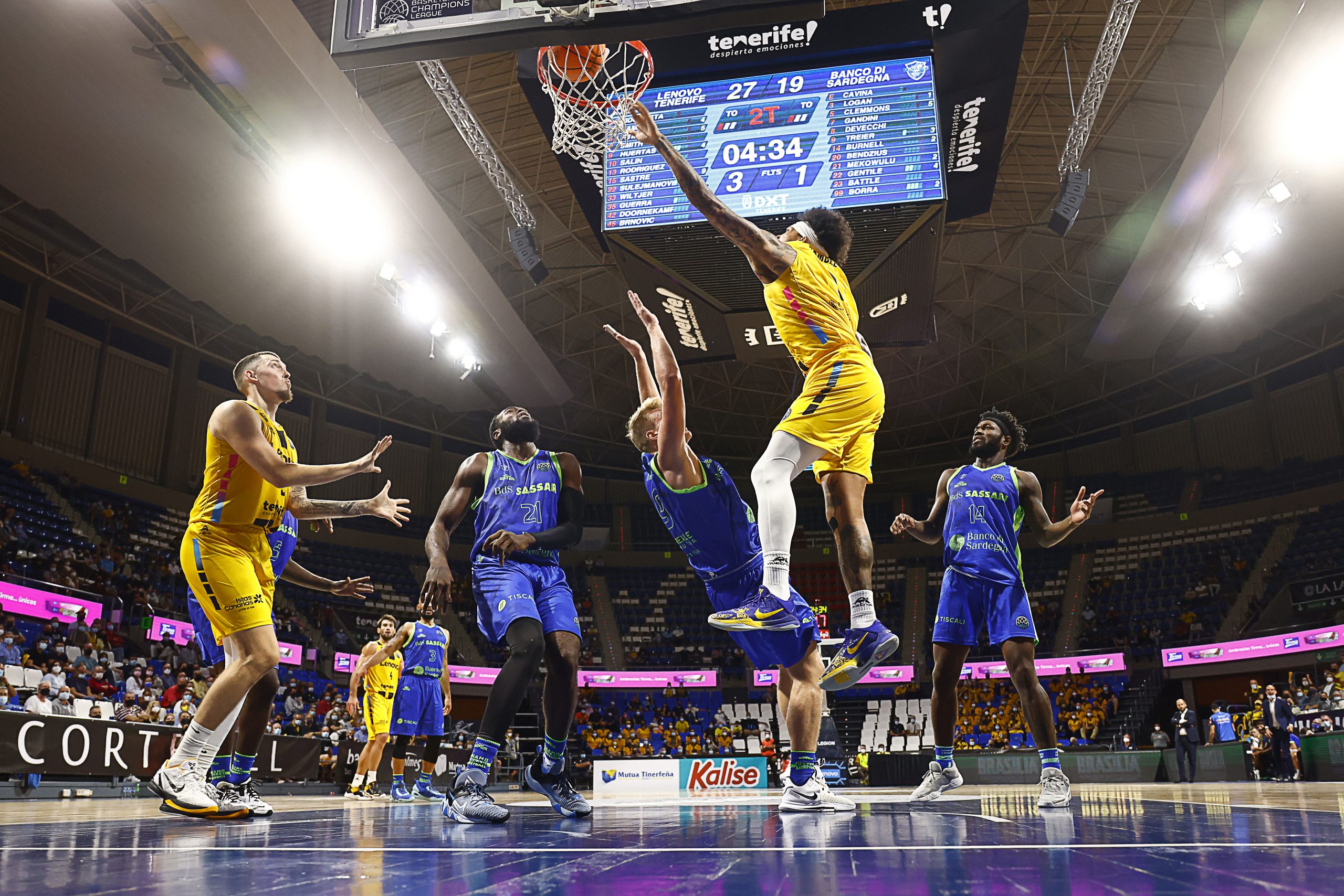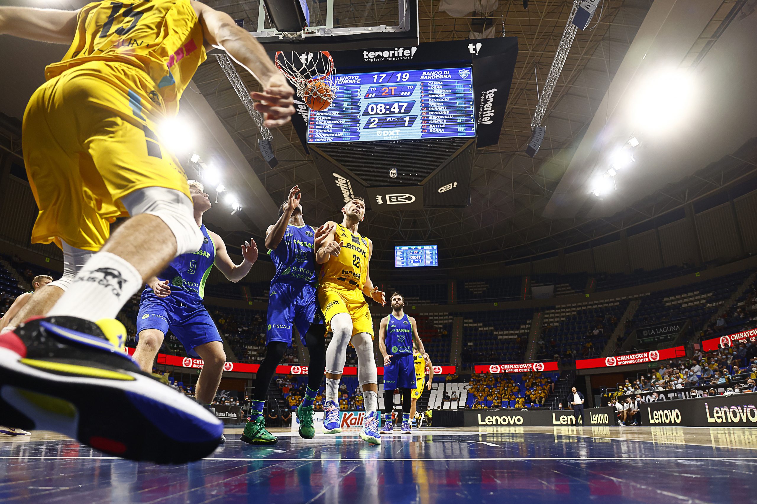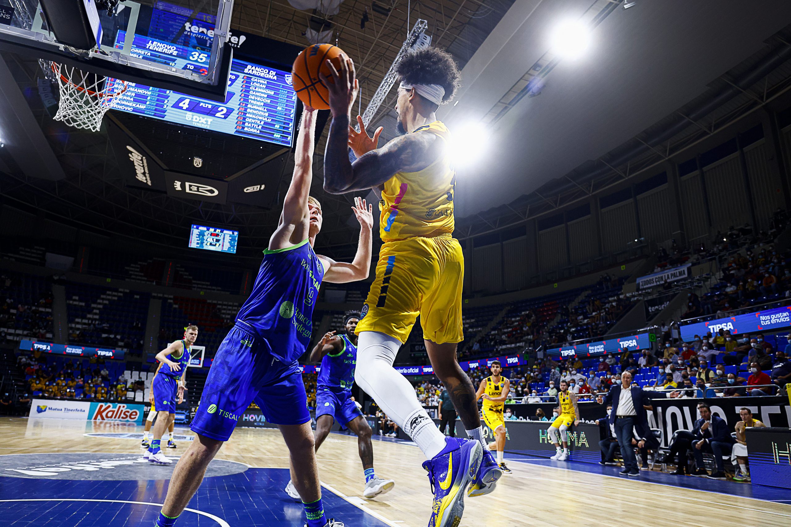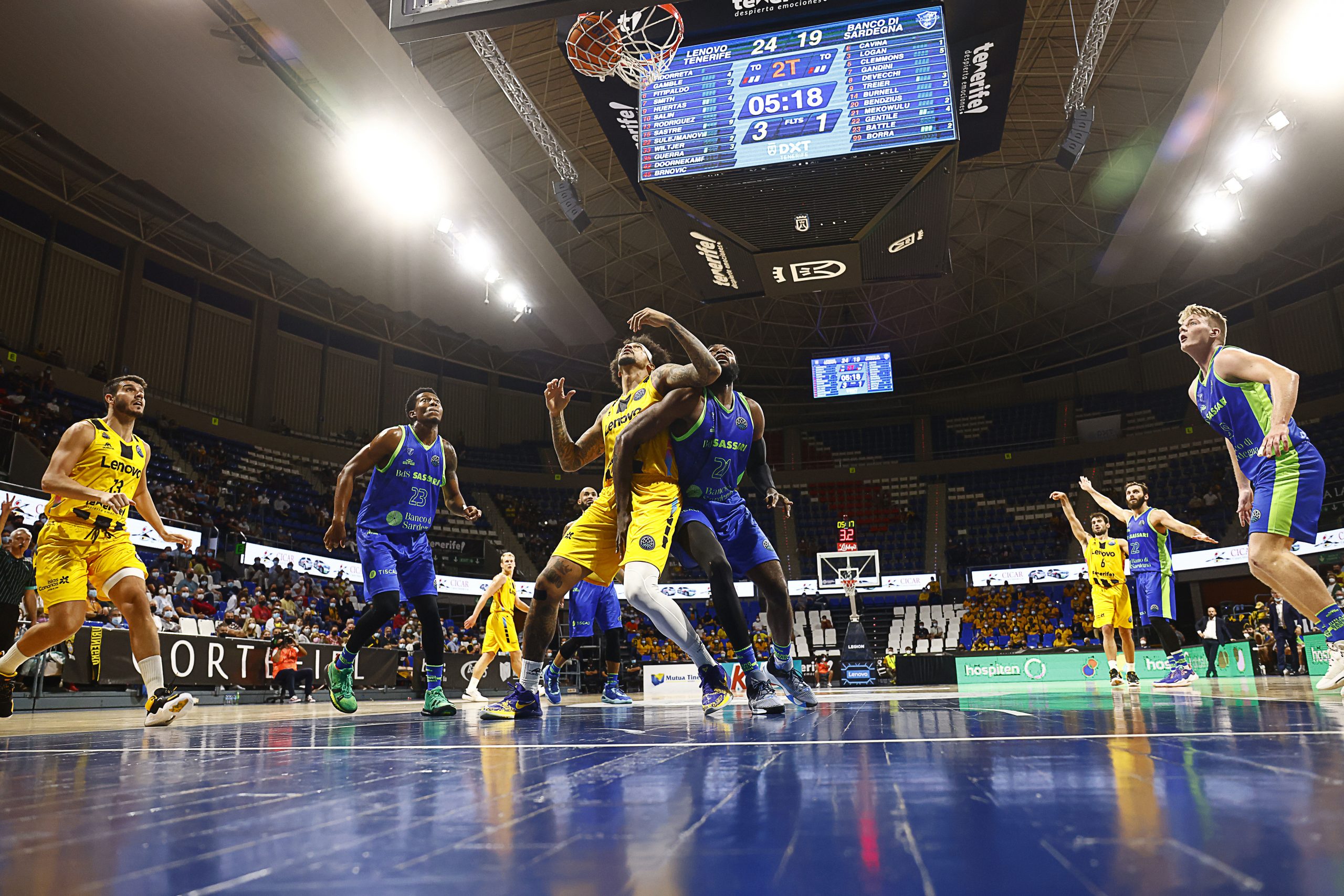 Lo intentaron los sardos tras el receso, pero el caso es que el Lenovo Tenerife impuso su ley. Fran Guerra cogió el relevo de Gamble en la zona y castigó a los italianos aprovechando la buena circulación de balón de sus compañeros y su buen hacer en las continuaciones.