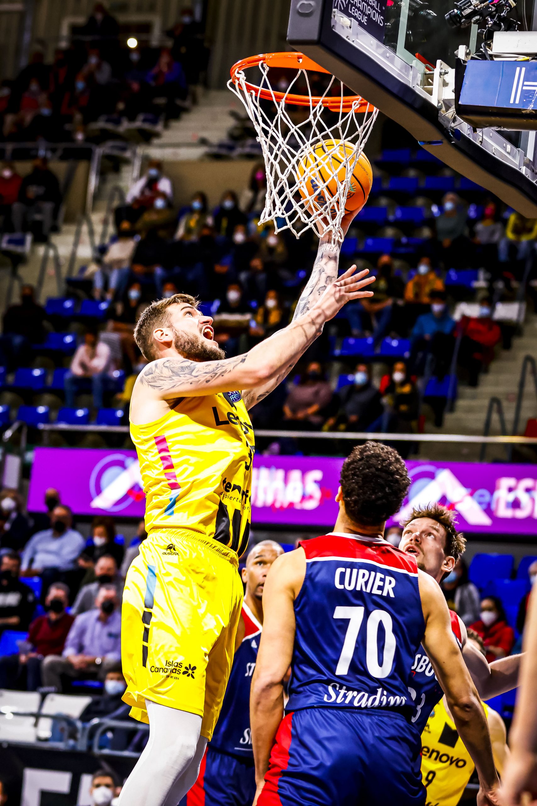 El caso es que el partido se tornó espeso por momentos. Los franceses aprovecharon la coyuntura para imponer su físico y firmar un parcial de 0-14. Costó lo suyo volver a coger ritmo, hasta que Marce recuperó la batuta. Dos libres suyos y un triple de Aaron Doornekamp, tras una gran circulación de balón, devolvieron el choque al carril de los laguneros (63-60).