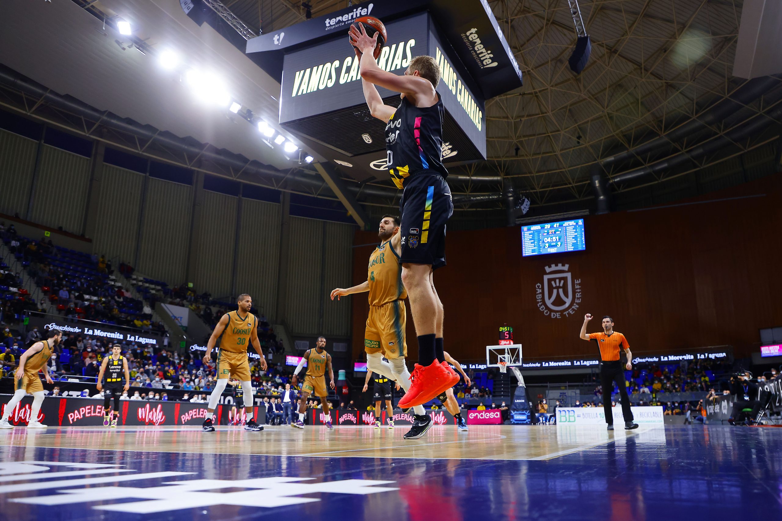 Fue tras el paso por vestuarios cuando el Lenovo Tenerife ajustó piezas y, tras un intercambio de pérdidas, agarró las riendas del choque. Un incisivo Fitipaldo, autor de nueve puntos consecutivos; y la fortaleza atrás del bloque, pintaban el guión de aurinegro y permitían al Canarias abrir incluso una pequeña brecha (65-57, min. 30).