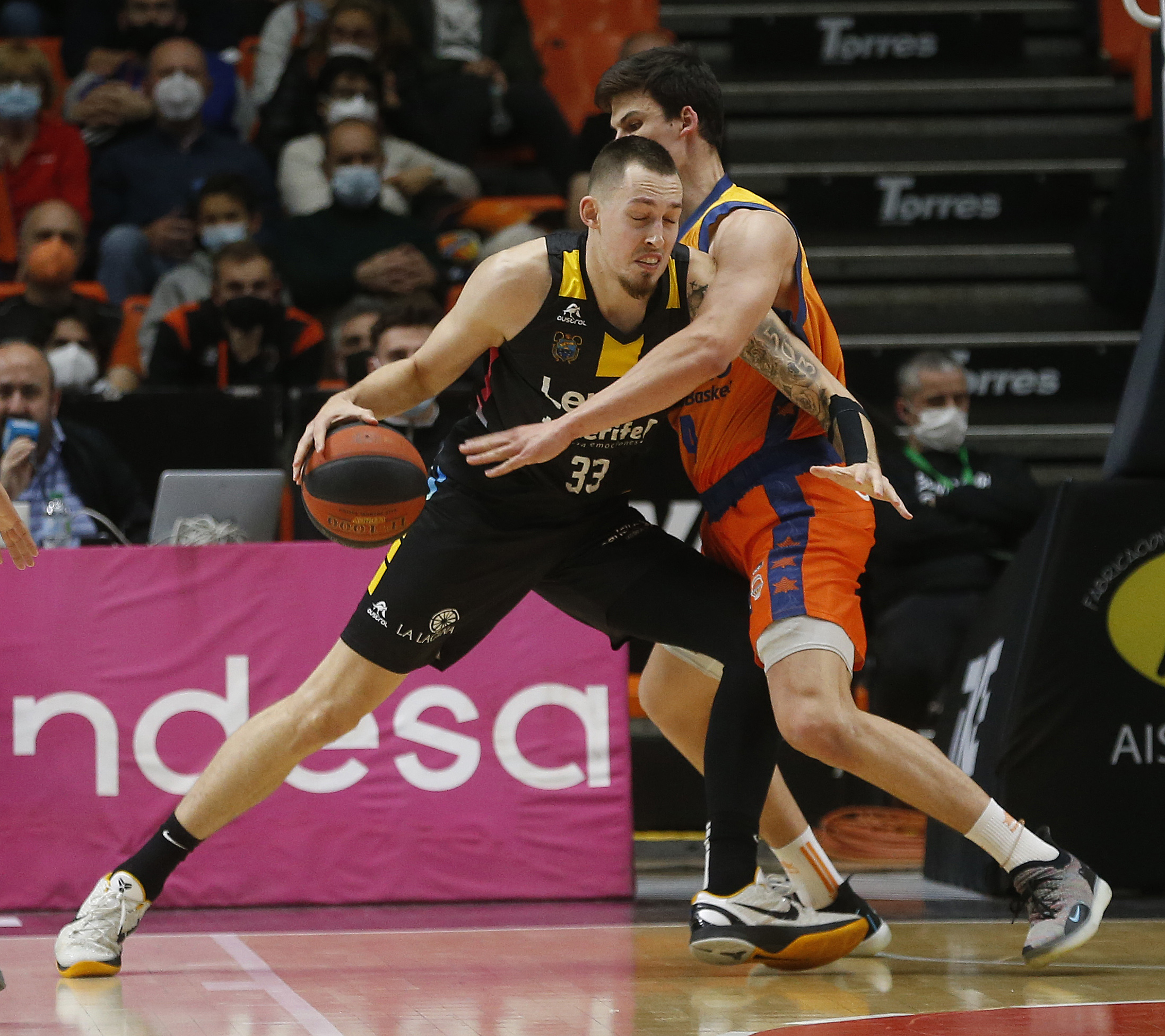 La mejoría aurinegra fue comiéndole poco a poco terreno a los locales, al tiempo que sembraba incertidumbre en la grada de La Fonteta. El carácter de los de Txus Vidorreta, con un Dejan excelso en el triple y un Huertas tirando de galones (11 puntos en el tercer cuarto), devolvió el equilibrio a la contienda.