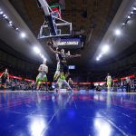 Costó lo suyo meterse en partido, hasta el punto de que dos triples consecutivos de Emegano y Ristic ampliaban a 14 la renta visitante (8-22). Sin embargo, lejos de desconectarse, el equipo insular fue minimizando daños progresivamente con sus primeros aciertos desde la larga distancia, tras un 0/7 inicial: 16-24, tras sendos triples de Todorovic y Wiltjer.