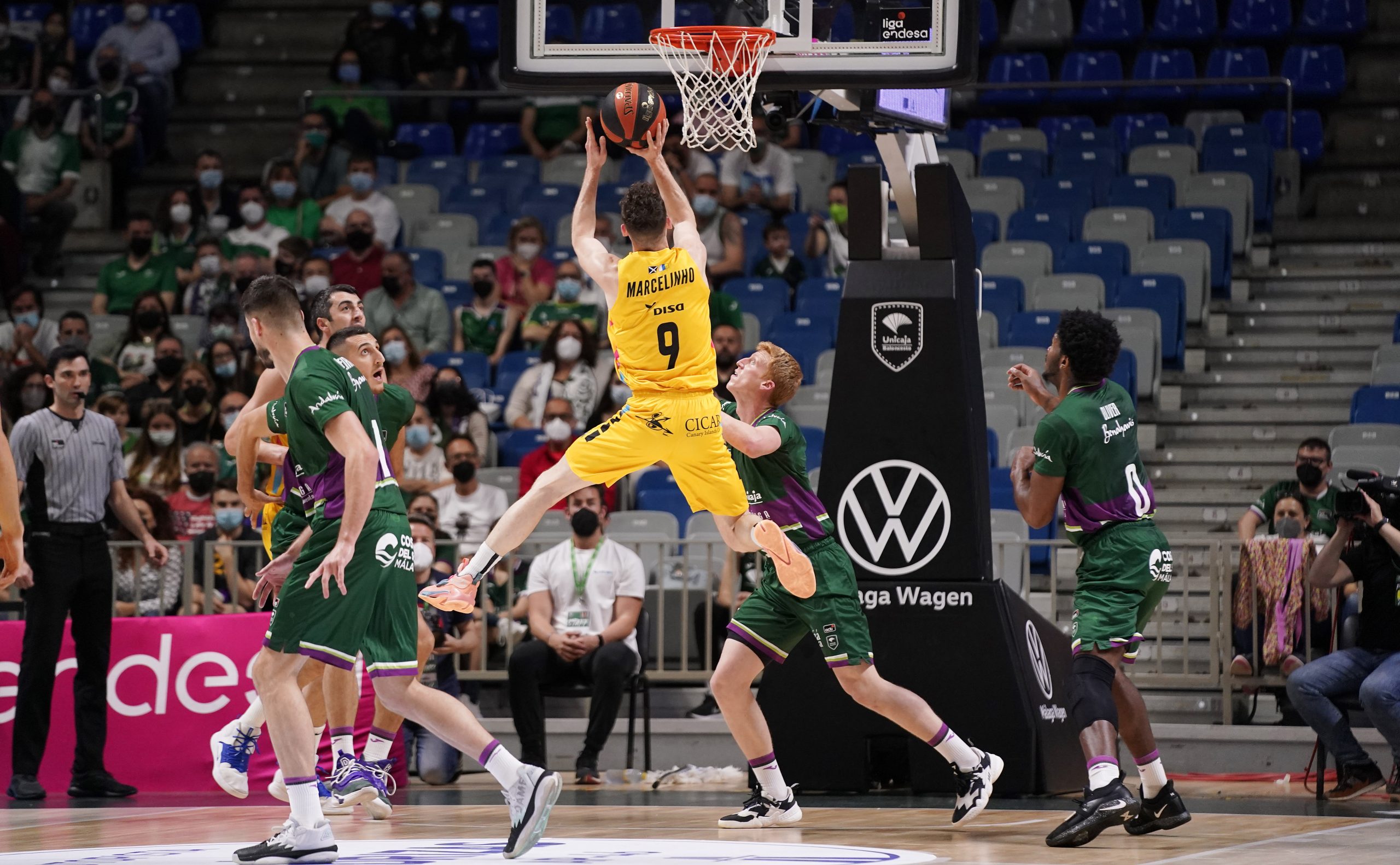 Arrancó muy metido el conjunto insular, que marcó territorio de inicio (0-6), circulando el balón con mucha cabeza y fajándose bien atrás para amarrar bien las muchas prestaciones del perímetro malagueño, tan bien maniatado que se perdió en un mar de errores (1/7 al cierre del primer cuarto y 3/26 al final del partido) para ir ya a remolque durante todo el encuentro.