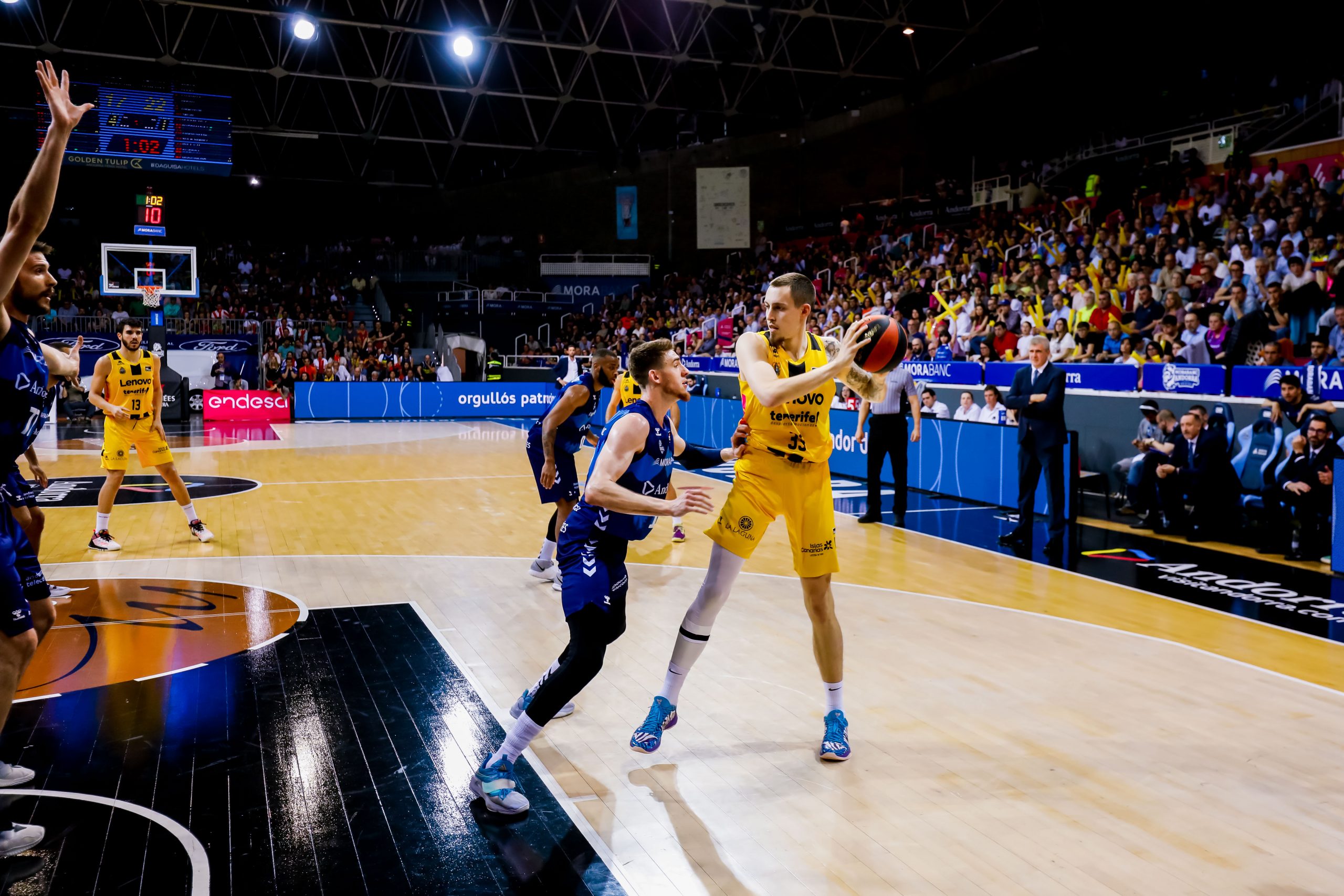El equipo aurinegro firmó una notable puesta en escena, explotando sus virtudes en la circulación del balón y martilleando desde el triple; para luego contener con oficio y entereza la reacción de un adversario, el andorrano, espoleado por una afición que llenó la cancha y no se rindió hasta el último resuello. Una canasta de Gio Shermadini, en el último segundo, concedió a los tinerfeños un triunfo buscado con ahínco.