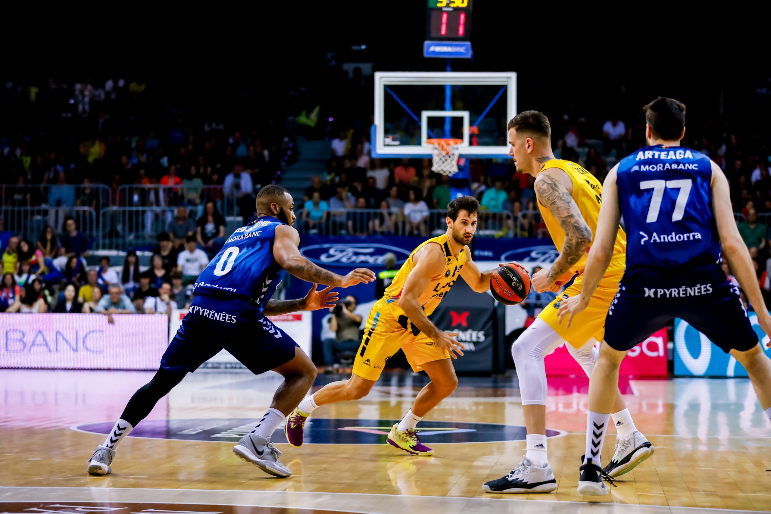 A la vuelta de vestuarios, el cuadro aurinegro pareció salir igual de enchufado: 30-44, tras triple de Todorovic; y 41-54 tras otros dos aciertos desde el 6,75 de Borg. Sin embargo, el Morabanc Andorra apretó atrás y se encomendó a la calidad de Miller-McIntyre, que exprimió su buen hacer en los tiros de media distancia para ir acercando a su equipo progresivamente en el electrónico (53-58, min.30).