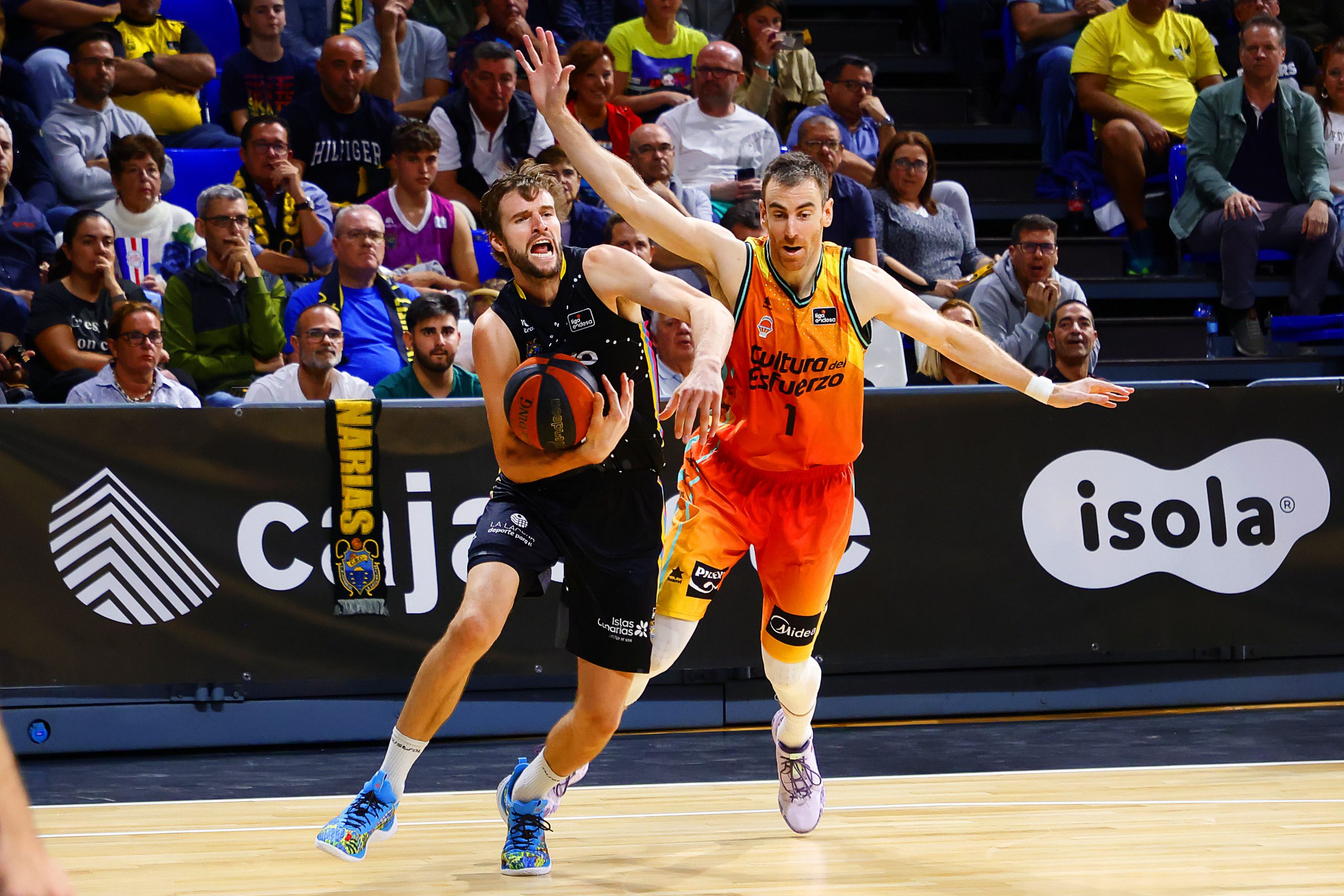 Lejos de bajar el pistón, la segunda unidad insular mantuvo contra las cuerdas al conjunto taronja (27-17, min. 10). Un parcial de 10-2 mediado el segundo cuarto, con Sasu Salin martilleando desde el triple, sacaron del redil a los visitantes (34-19), sin recursos para frenar la solideza canarista.