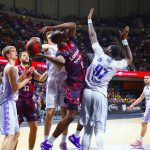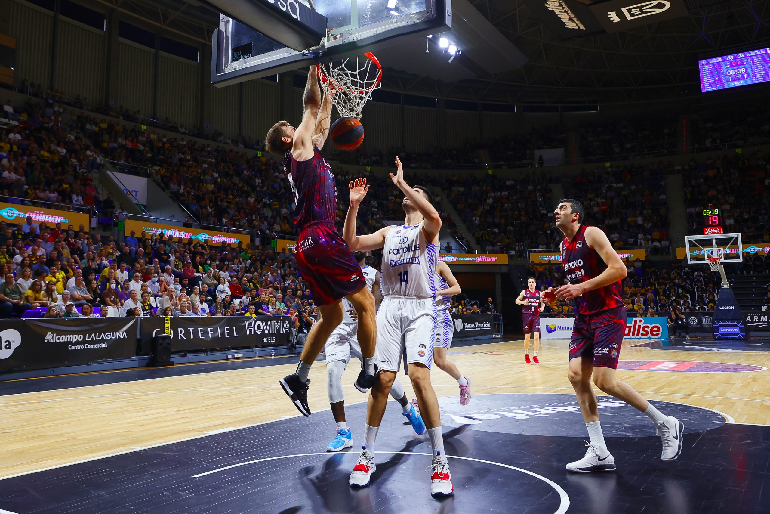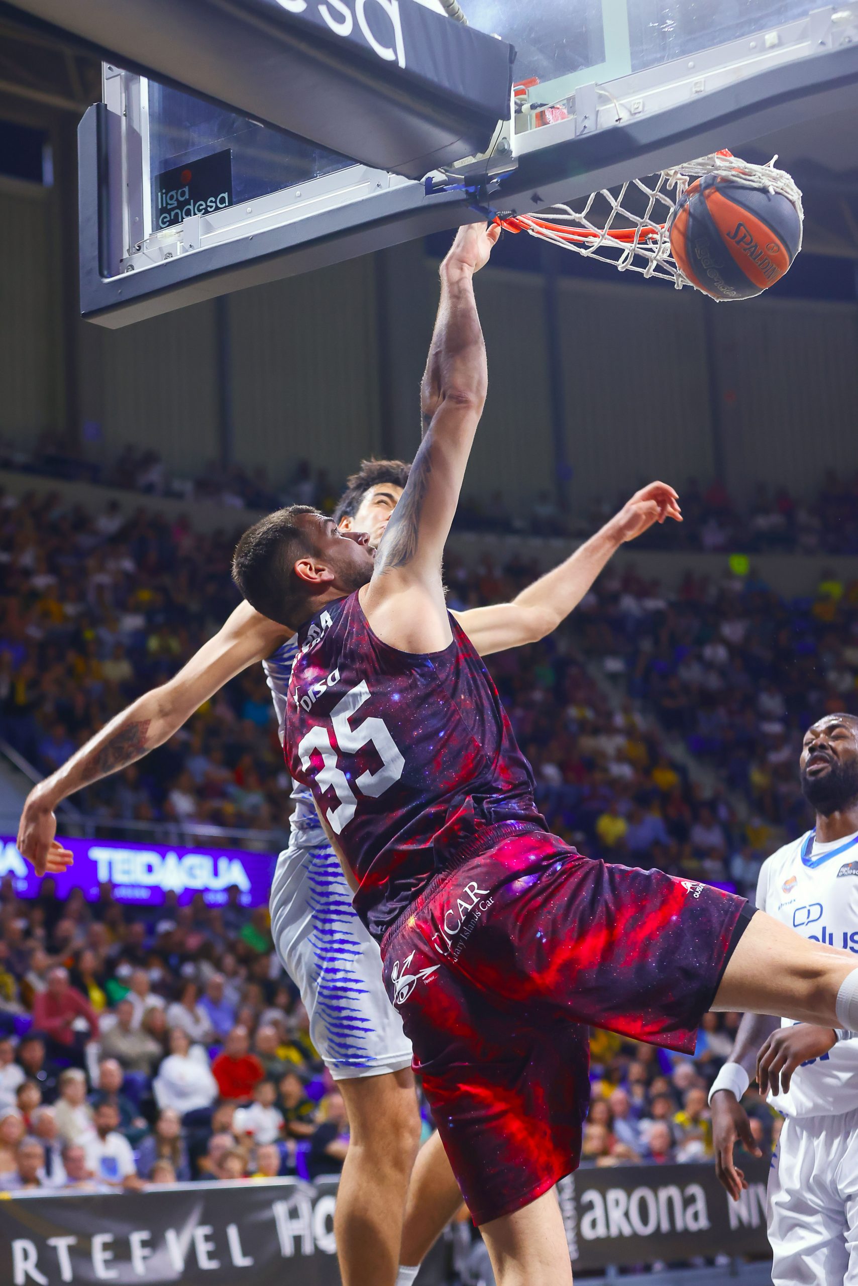 El grupo de Txus Vidorreta dio una vuelta de tuerca más a su fiabilidad defensiva, encadenó varios robos y se permitió incluso el lujo de correr para firmar un arreón de 20-4 que dejaba ya tocado del todo a su rival (67-38). El festival de Salin desde la larga distancia, los robos de Sastre y los mates espectaculares de Elgin, Tim o Fran Guerra provocaron el éxtasis de un Santiago Martín totalmente entregado.