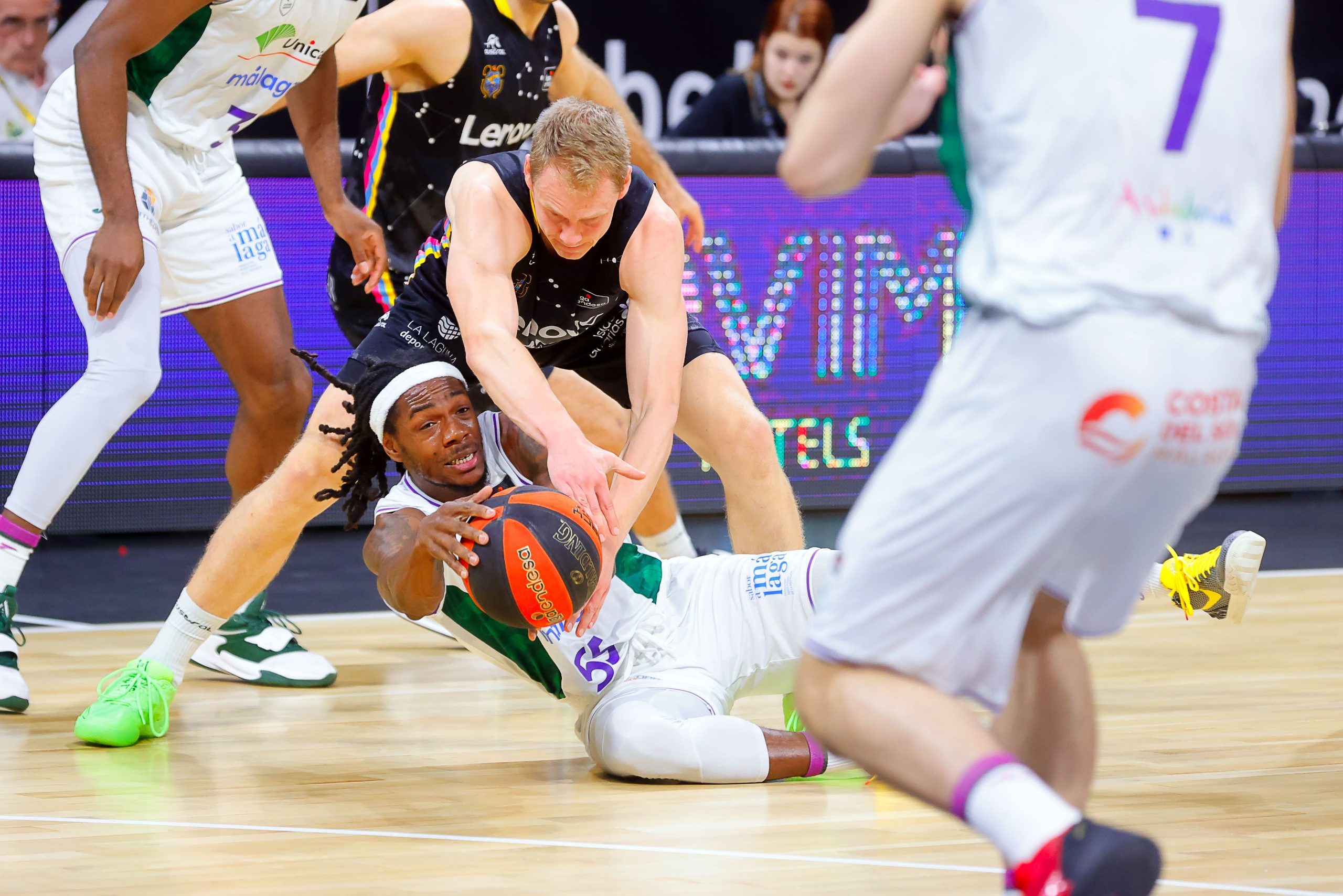 Jaime continuó viendo el aro como una piscina; si bien el Unicaja no tiró nunca la toalla y tuvo los arrestos de forzar un epílogo parejo (67-64); incluso después de un 3+1 de Aaron Doornekamp para el 82-73 y de un posterior arreón local para el 87-80, con 1:10 para el cierre.