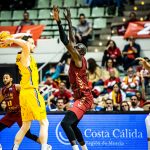 Arrancó más enchufada la escuadra murciana, que exprimió incluso un par de triples abiertos de sus interiores Pustovyi y Diop para empezar a abrir brecha en el electrónico (17-11). La irrupción de Trice y Jelinek lanzó aún más a los locales (23-12), mucho más atinados de cara al aro (firmaron un 4/4 en tiros de dos y un 5/8 en triples en los primeros ocho minutos).