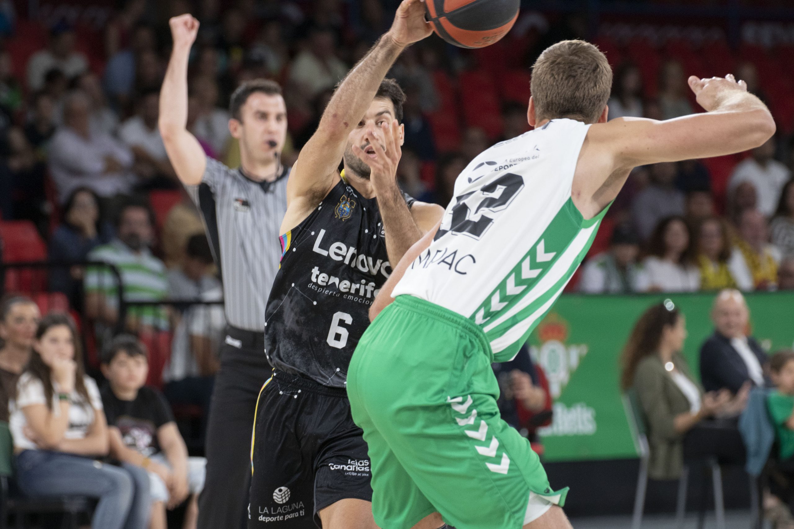 Sin generadores suficientes para fabricar canastas echando el balón al suelo y una vez los triples dejaron de entrar con la frecuencia deseada, el conjunto insular sufrió ante un Betis al que le iba la vida en el partido e imponía su mayor profundidad de banquillo (21 puntos de su segunda unidad por seis de los laguneros al descanso).