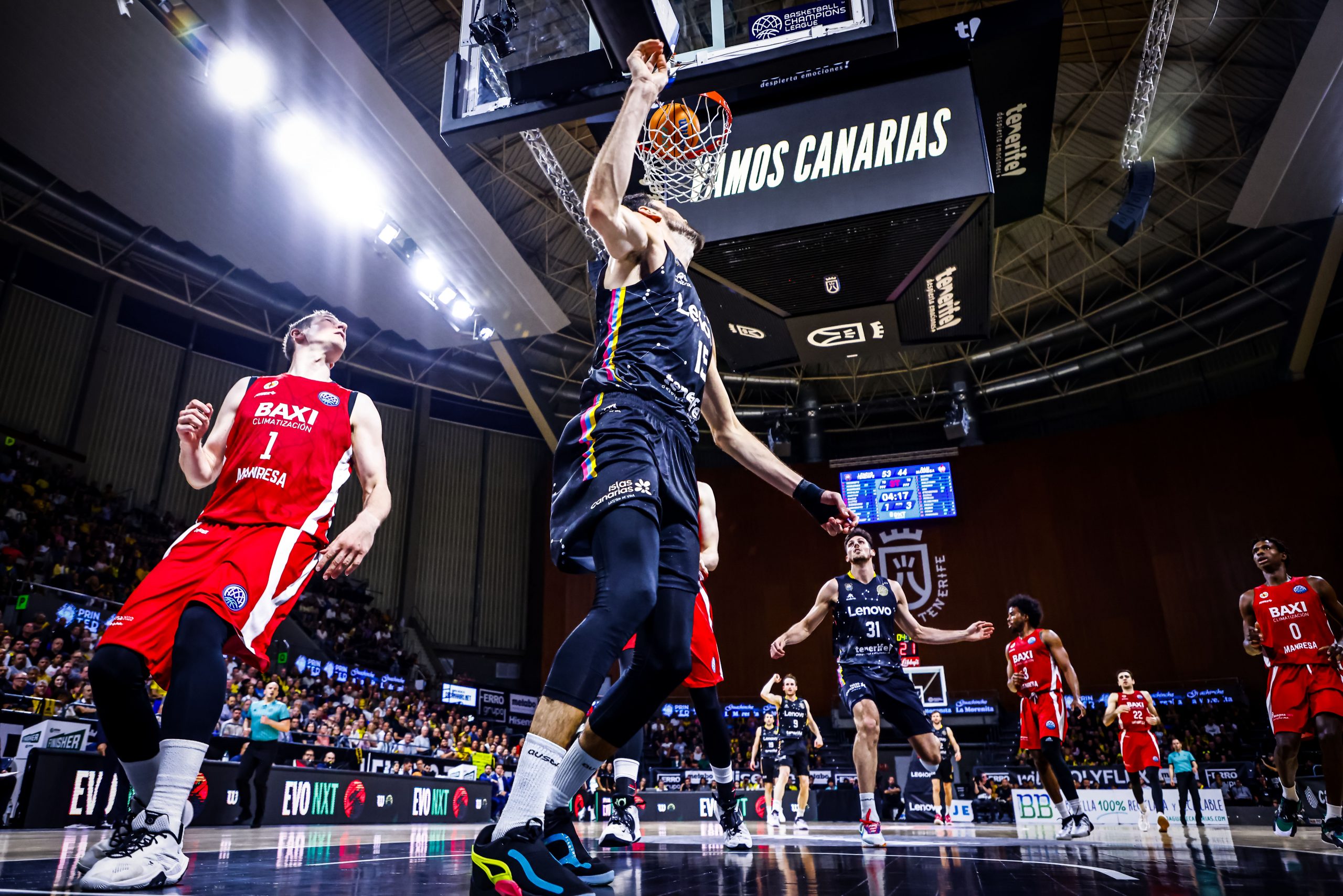 Pero el Canarias volvió a reaccionar con entereza, otra vez a lomos de un Fitipaldo letal que dio el último arreón para certificar la victoria y la deseada clasificación para la Final Four. Dos triples del uruguayo y una canasta posterior de Tim Abromaitis tras rebote ofensivo dispararon ya del todo la euforia de un Santiago Martín totalmente entregado a la causa y lleno a reventar.
