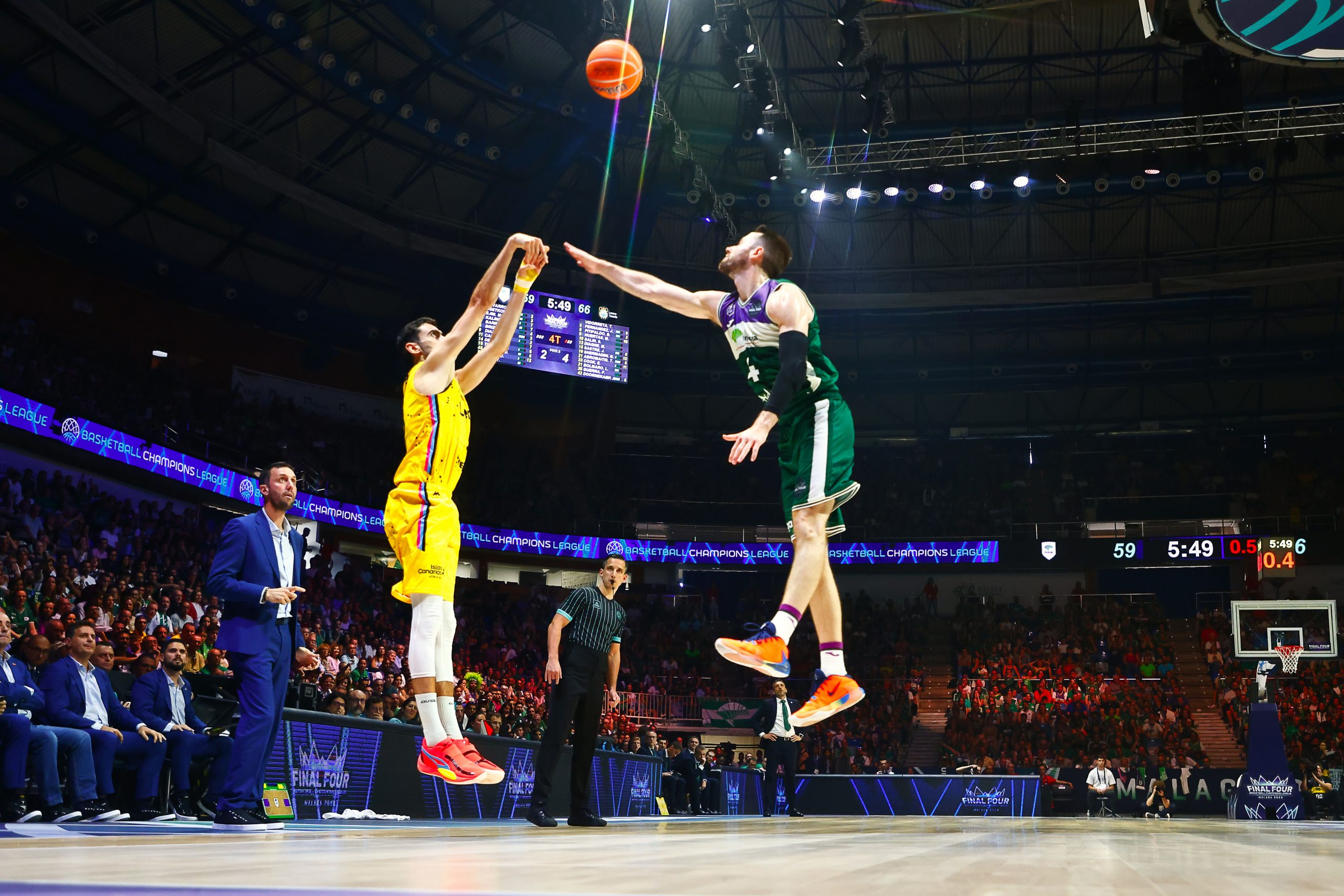 El partido nació y creció a un ritmo vertiginoso, con ambos equipos muy acertados y ofreciendo un espectáculo de muchos quilates al respetable. El Unicaja intentó correr para buscar la estampida en el electrónico: 18-12, tras sendos triples de Kalinoski y Ejim; y 23-17, después de un 2+1 de Perry.