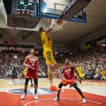 Llegados al último cuarto, los catalanes forzaron la máquina y siguieron recortando distancias desde el 4,60, coincidiendo con varios minutos de mérito de Fjellerup y Sergi Martínez. Los problemas en el rebote defensivo metían en apuros a los insulares, pero aún así el Lenovo Tenerife mostró la solidez necesaria para mantenerse arriba en el electrónico.