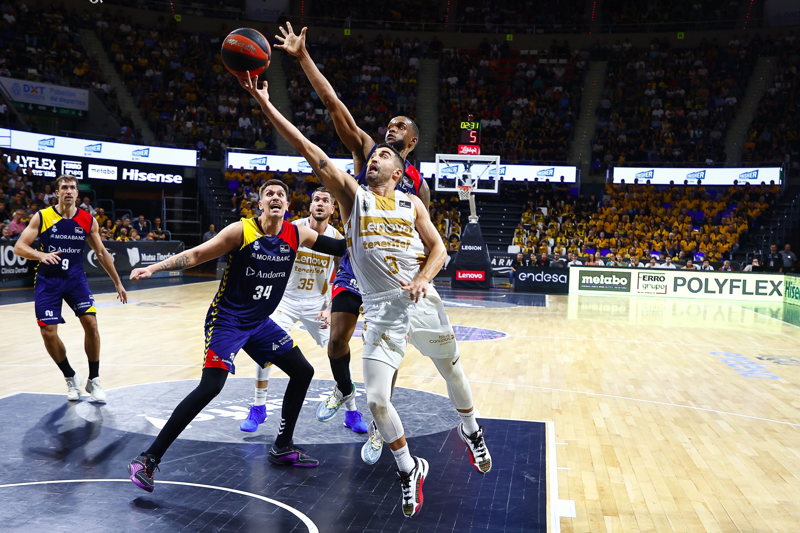 El Morabanc cambió el quinteto casi al completo e intentó meterse en partido, con un par de acciones de rabia de Maric y un triple de Juan Rubio. El parcial de 2-9 estrechó de nuevo el cerco (15-12), pero el Canarias se mantuvo firme. Con los baluartes andorranos bien sujetos, el conjunto lagunero fue ganando en confianza para ampliar la renta hasta los 14 puntos al descanso: 38-24, tras un triple de Sasu Salin.