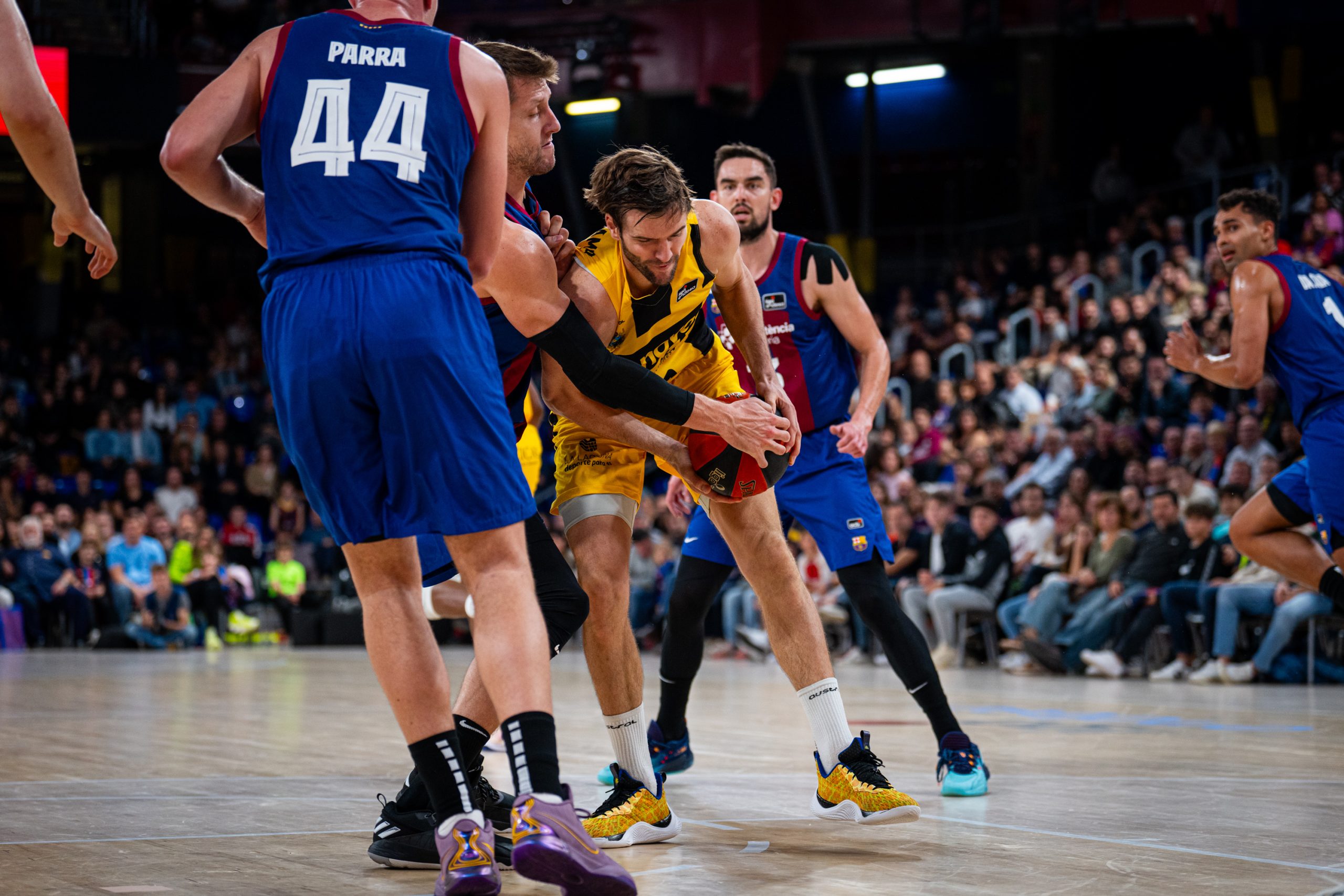 La fortaleza coral atrás y la fluidez que despertaba la dirección de Marce ponían de nuevo a los culés en aprietos: 62-60, min. 31. Con el último cuarto por delante, los aurinegros perdían a Jaime Fernández, por un tirón en los isquios (pendiente de pruebas para valorar alcance), pero eso no les privaba de seguir exhibiendo su carácter competitivo, con Gio Shermadini mejorando prestaciones en la pintura y Dusan Ristic haciendo daño con sus triples abiertos.