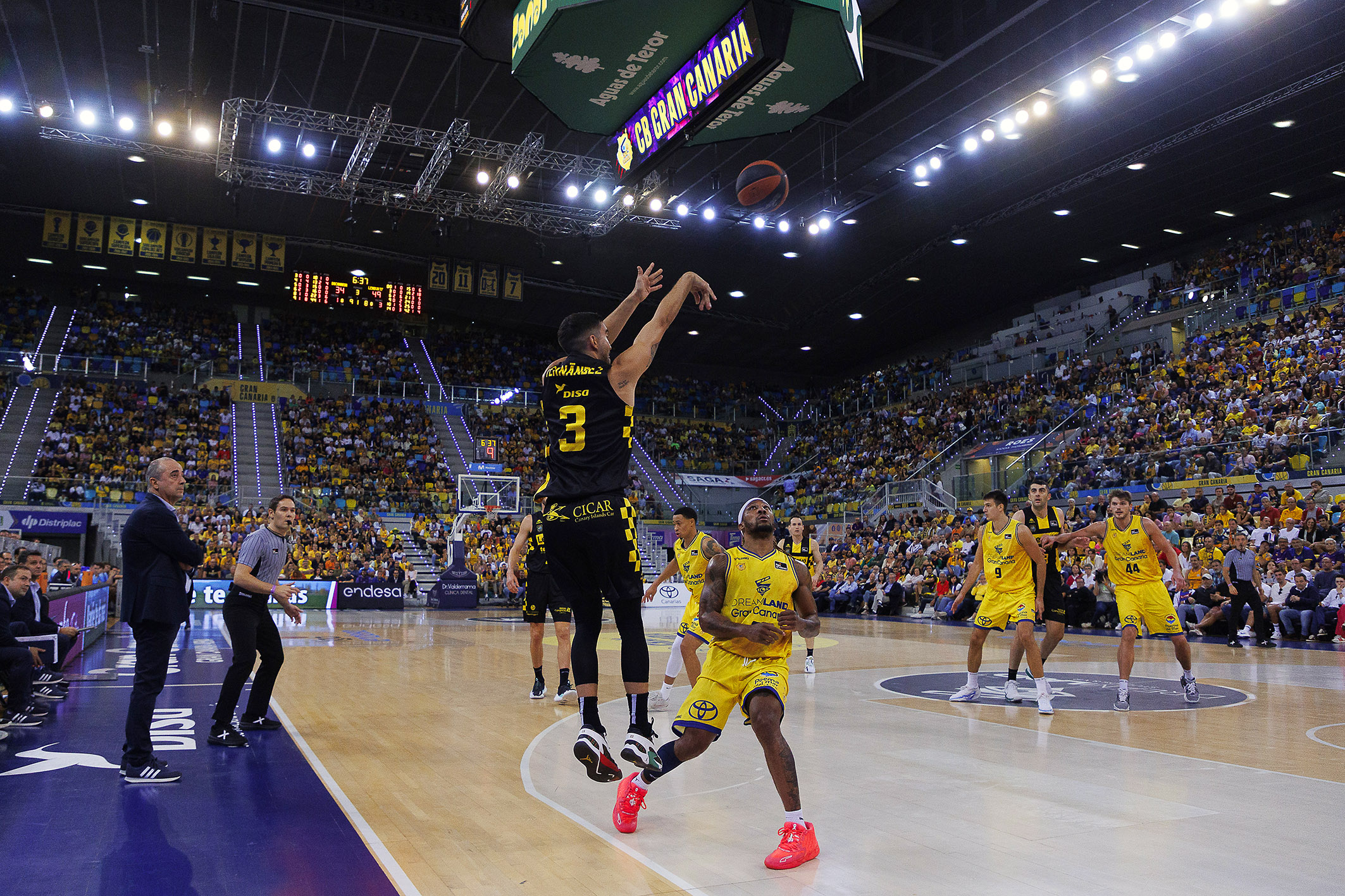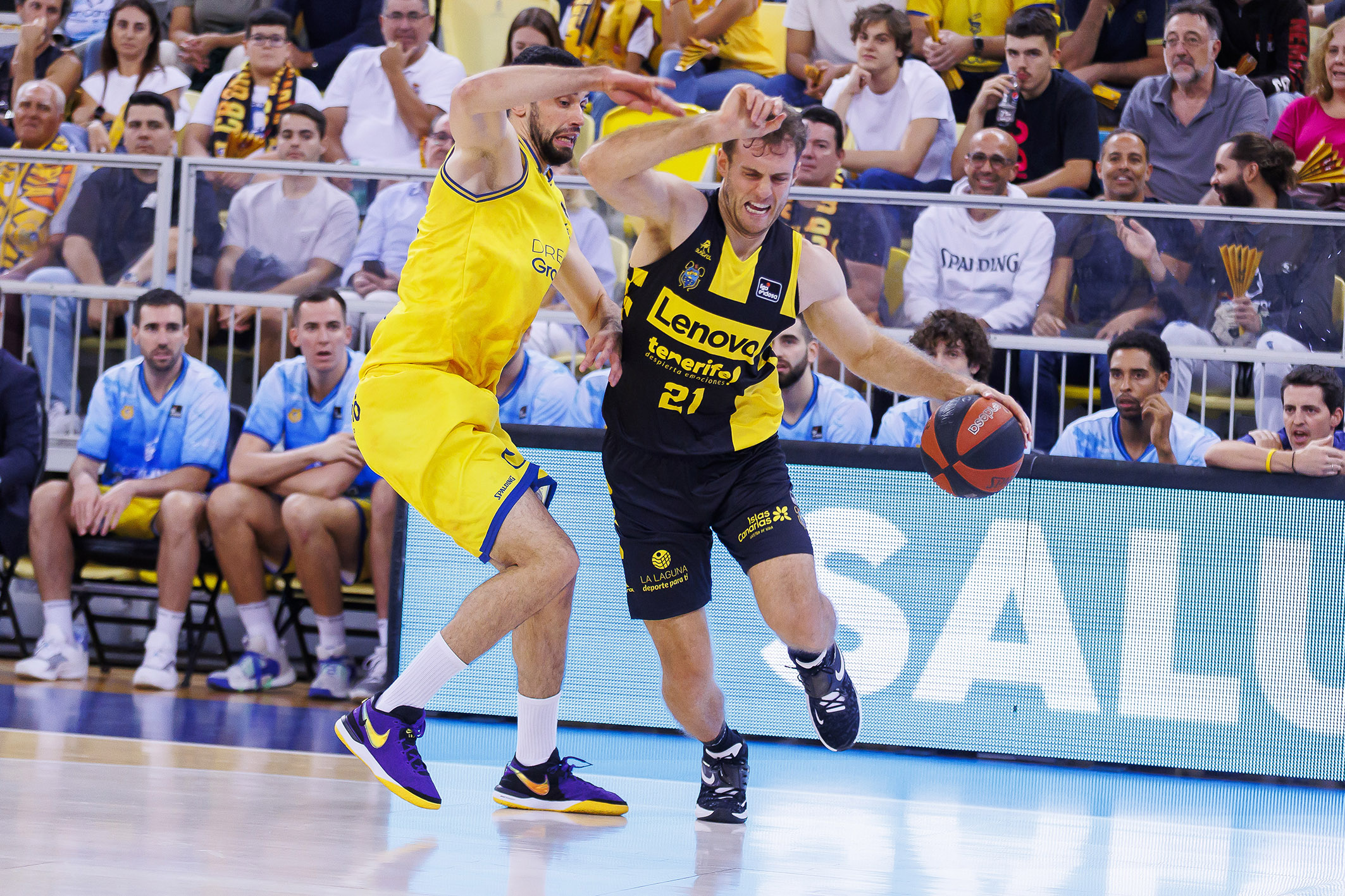 El conjunto tinerfeño sujetaba bien a los principales referentes anotadores del Granca y llevaba además el reto a su territorio, al son de Marcelinho Huertas (cinco asistencias al descanso) y de un Gio infalible en las continuaciones (16 puntos sin fallo al intermedio).