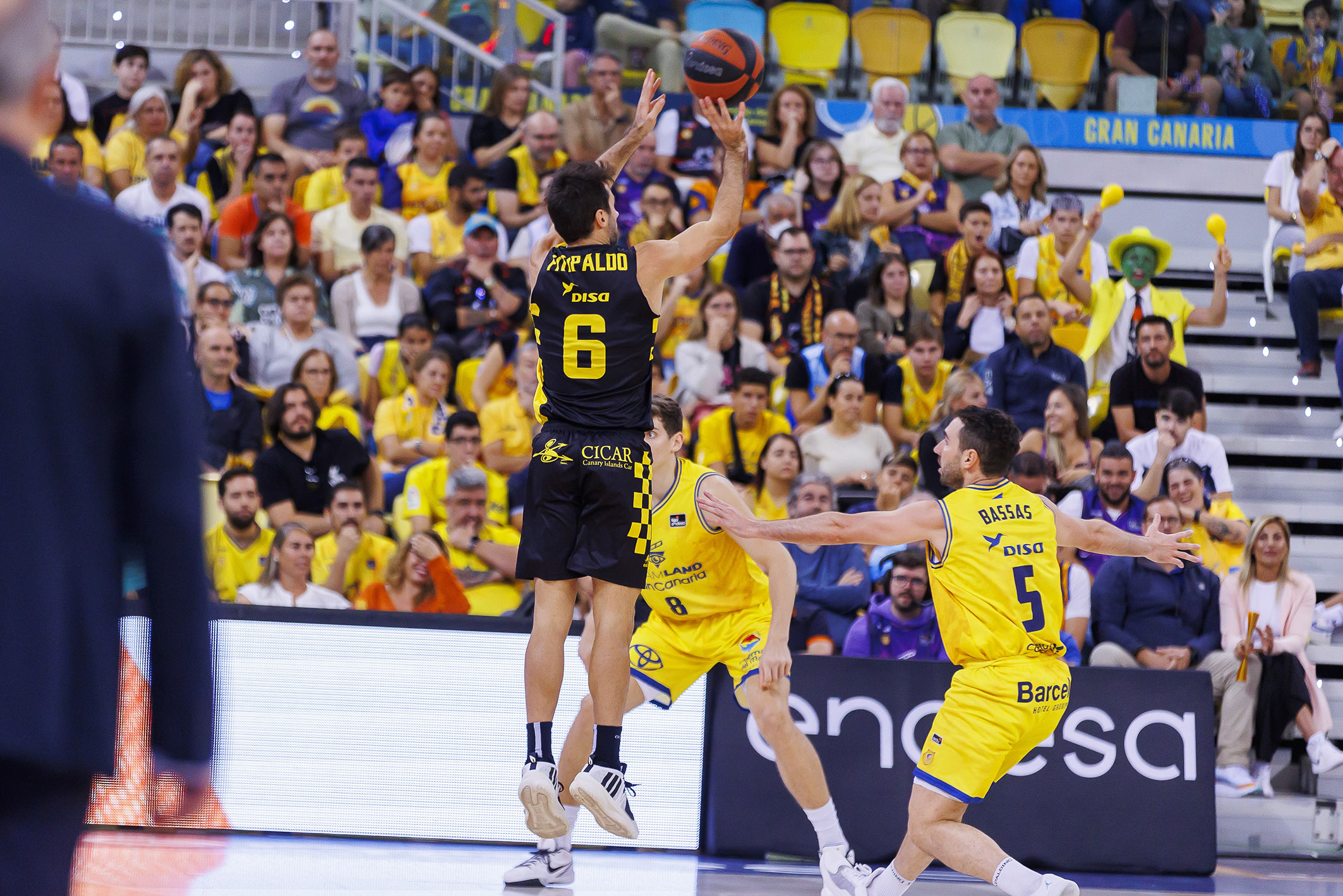 Arrancó el choque con excesivos parones y con algún intento local por abrir brecha (7-4, 14-10), pero el Canarias se fue haciendo fuerte desde la defensa para coger las riendas del electrónico. Un par de robos con finalizaciones de Joan Sastre y dos triples consecutivos de Bruno Fitipaldo propiciaron un parcial de 0-10 y permitieron a los laguneros dar el primer aviso serio a navegantes (16-26, min. 12) y lo más importante: imponer el ritmo que más le convenía.