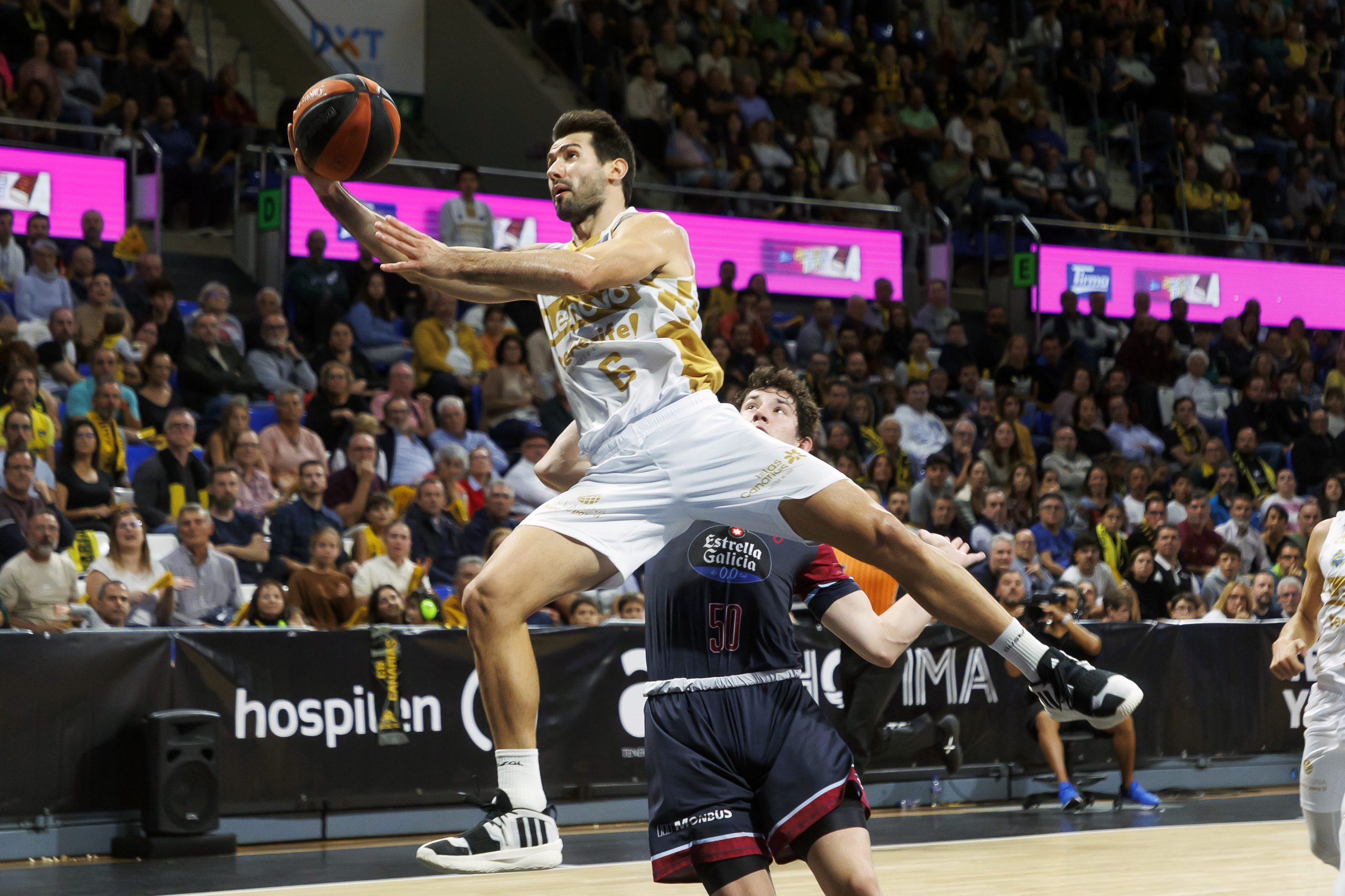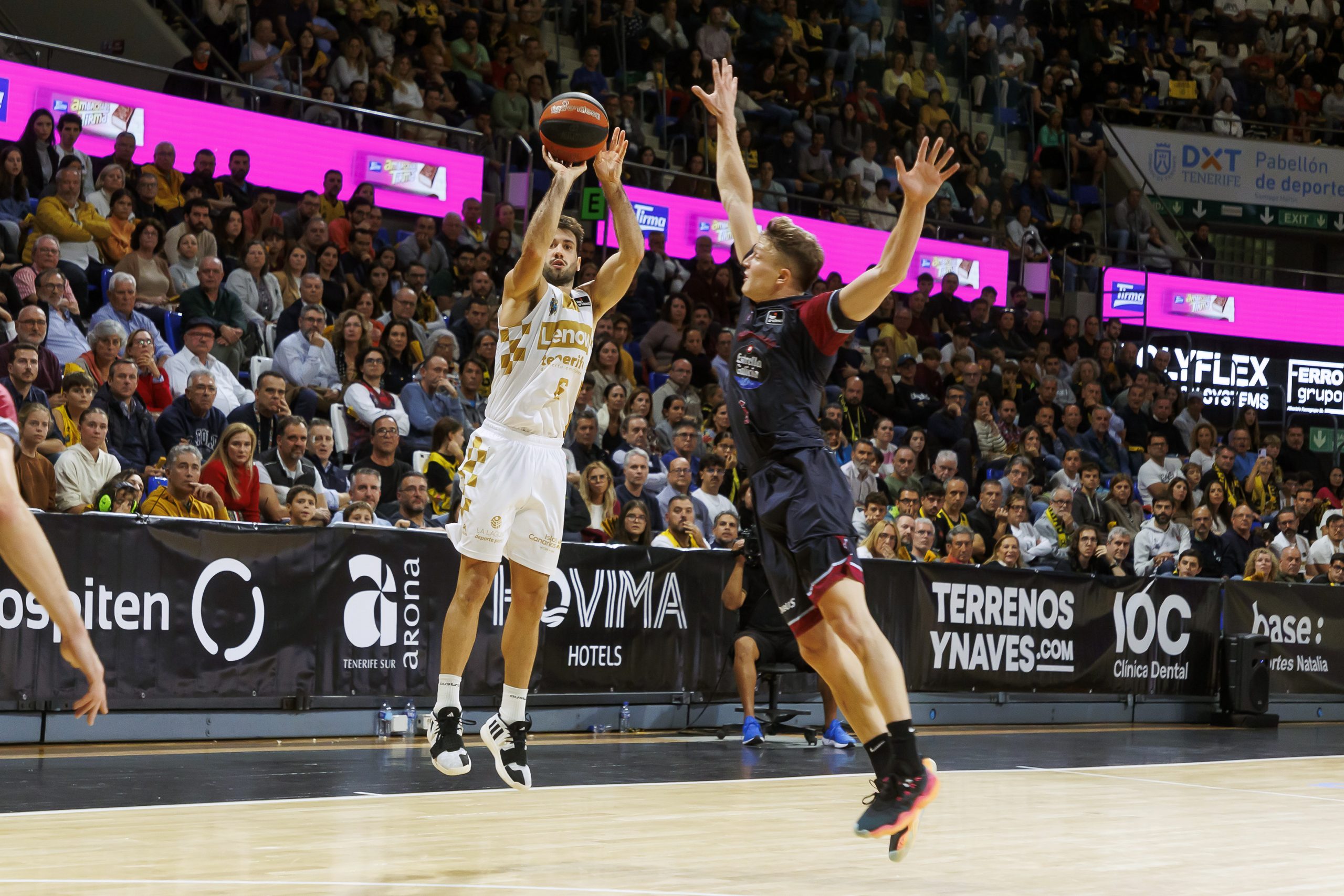 El acierto desde detrás del arco (los tinerfeños arrancaron con un 7/8 y se fueron al descanso con un 9/12 en triples) ampliaba por momentos la ventaja local (27-14), con Sasu Salin anotando con fluidez (4/4 de inicio desde la larga distancia). Sin embargo, los gallegos no se rendían. Thomas Scrubb, primero; y Guerrero, Kloviar y Tinkle, después, intentaban contrarrestar la fluidez de un equipo, el de Txus Vidorreta, que veía aro con facilidad.