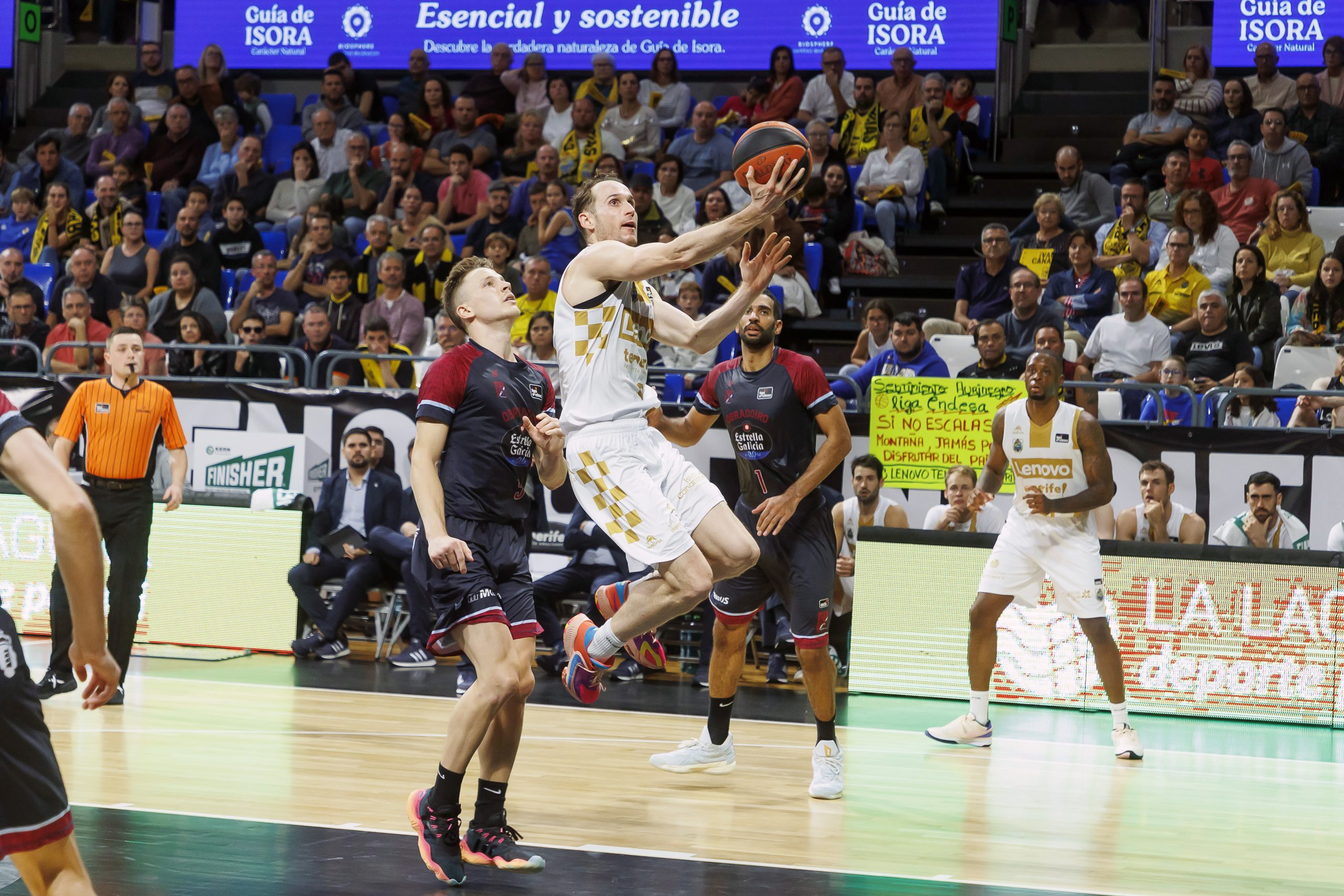 domingo, 3 diciembre, 2023 - 12:12El Lenovo Tenerife perdió este sábado noche ante un Monbus Obradoiro (87-92), que fue mejor tras el descanso (32-48). El equipo aurinegro no pudo refrendar las buenas sensaciones acumuladas en el primer acto en un partido que se complicó con los problemas de faltas de Gio, los errores locales y el buen hacer de un rival, el gallego, que los castigó con eficacia para imponerse en la batalla de los detalles.