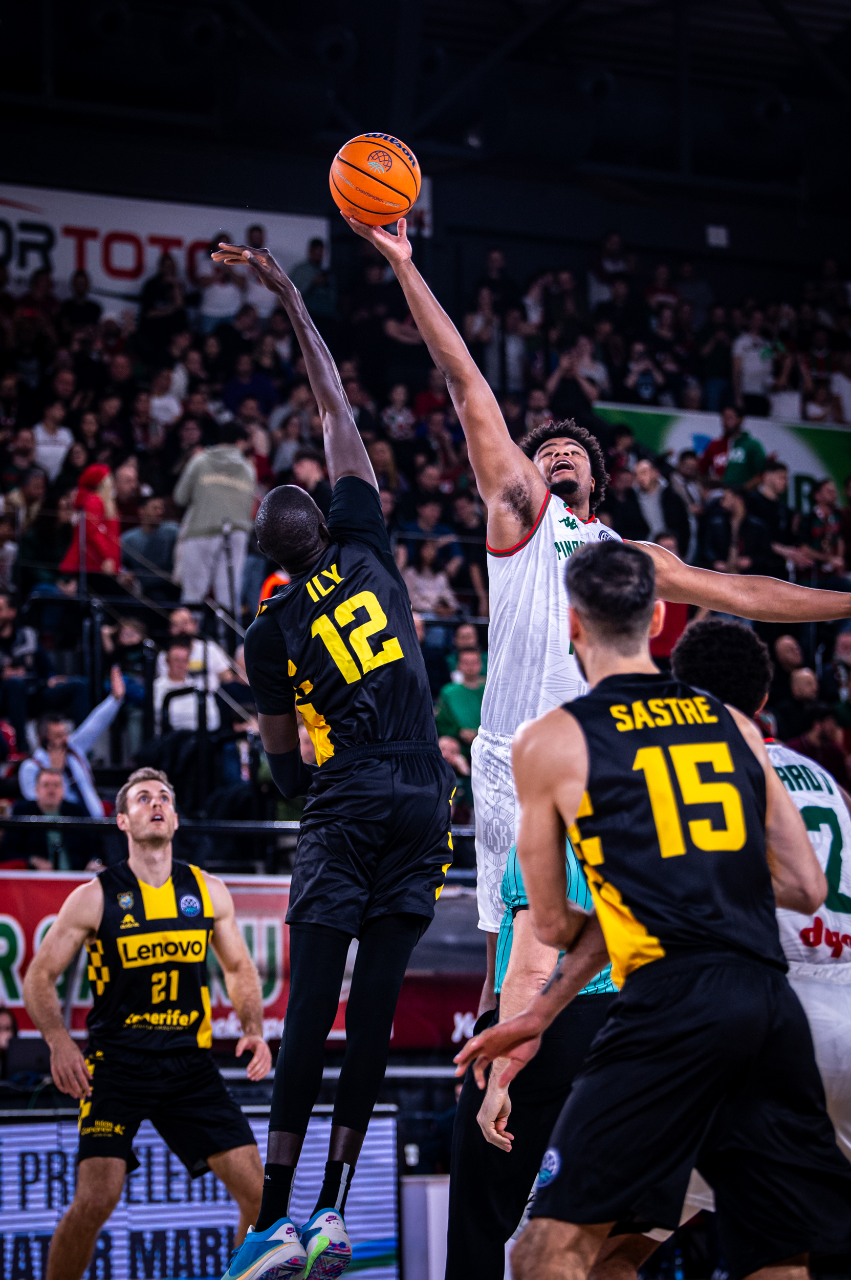 Con la cancha llena hasta la bandera, el equipo tinerfeño tiró de carácter, defensa y una sobresaliente clarividencia en ataque, especialmente en los momentos más delicados, para contrarrestar estoicamente las virtudes de un rival hasta ahora imbatido este curso en su pista en el torneo continental.